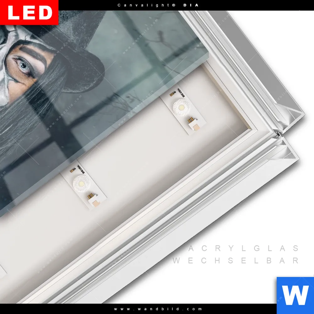 LED-Glasbild mit austauschbarem Acrylglas-Druck (Wechselbild)
