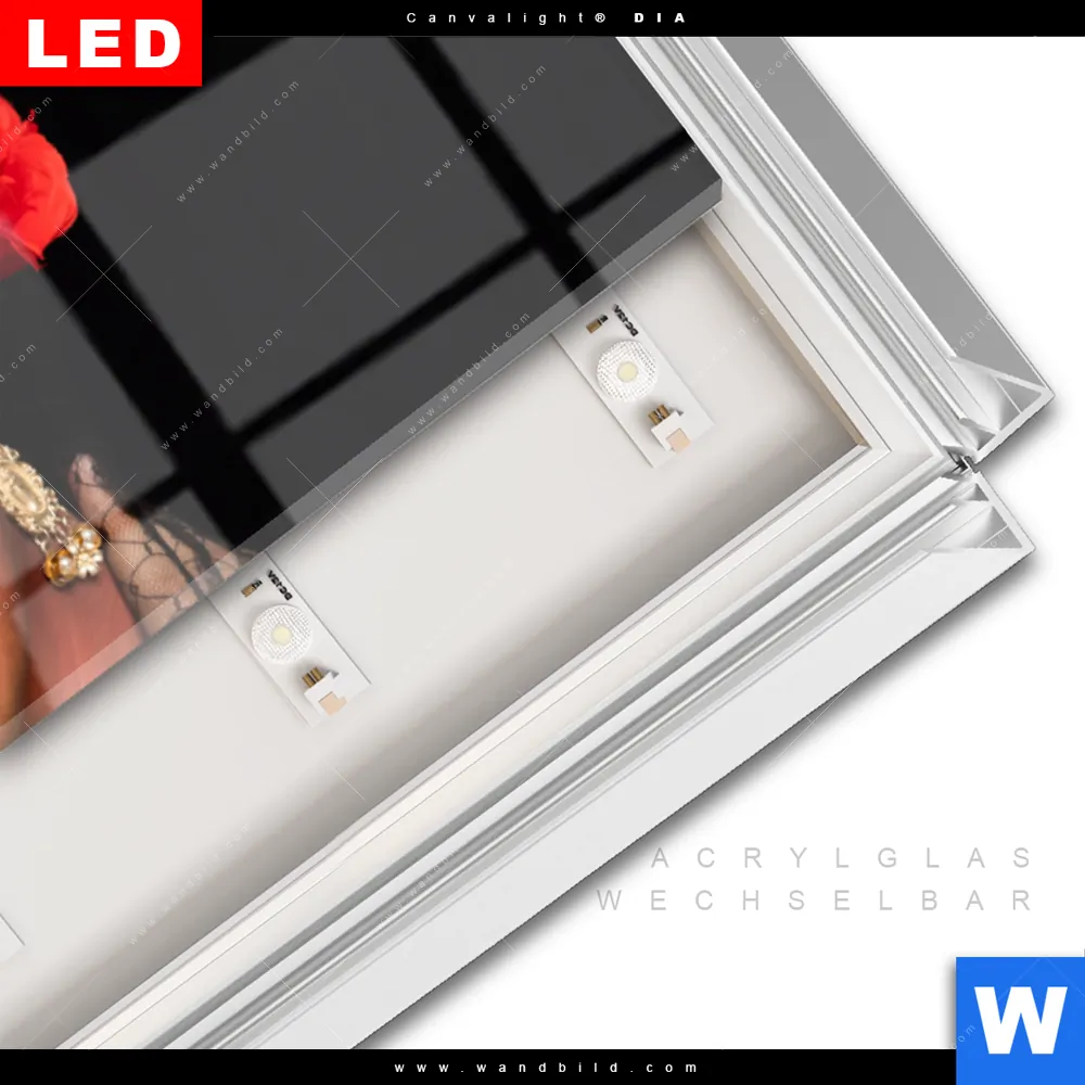 LED-Glasbild mit austauschbarem Acrylglas-Druck (Wechselbild)