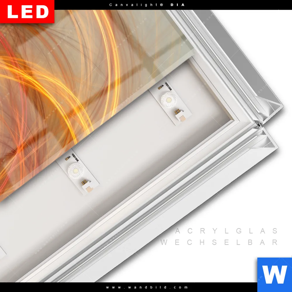 LED-Glasbild mit austauschbarem Acrylglas-Druck (Wechselbild)