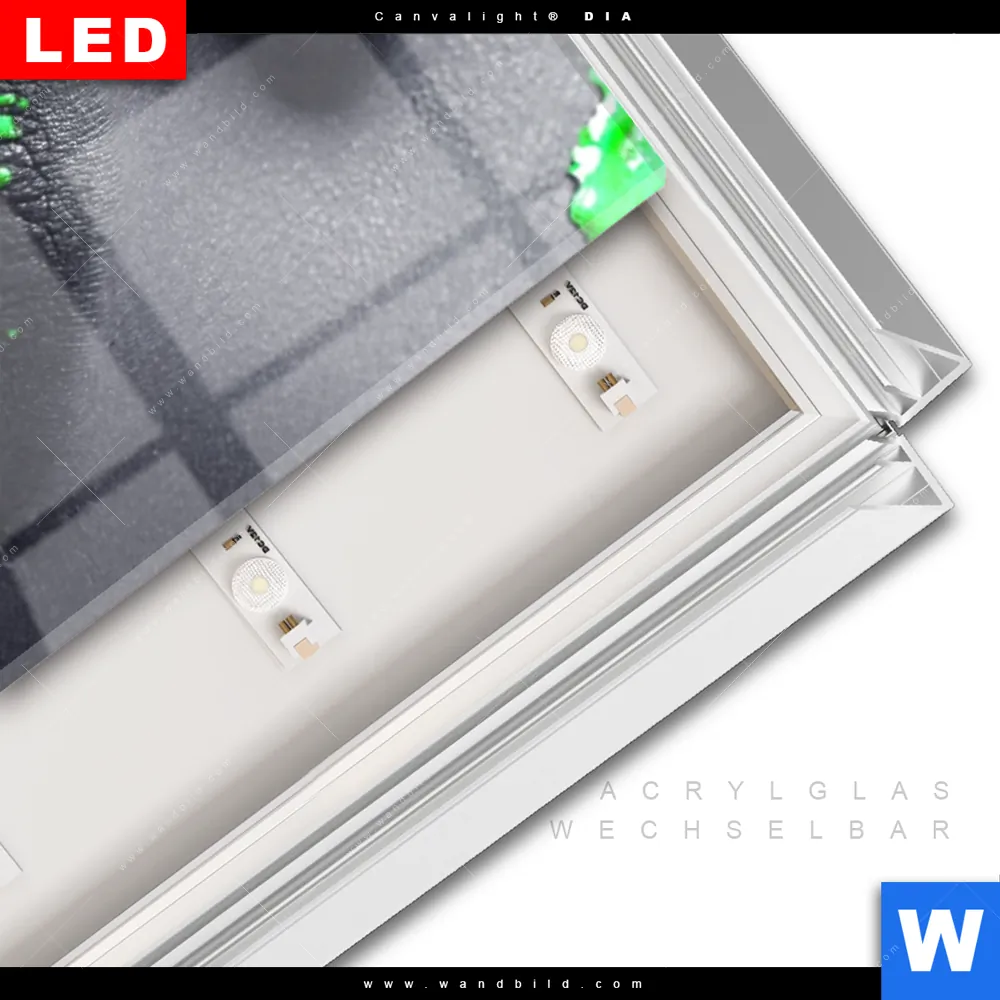 LED-Glasbild mit austauschbarem Acrylglas-Druck (Wechselbild)