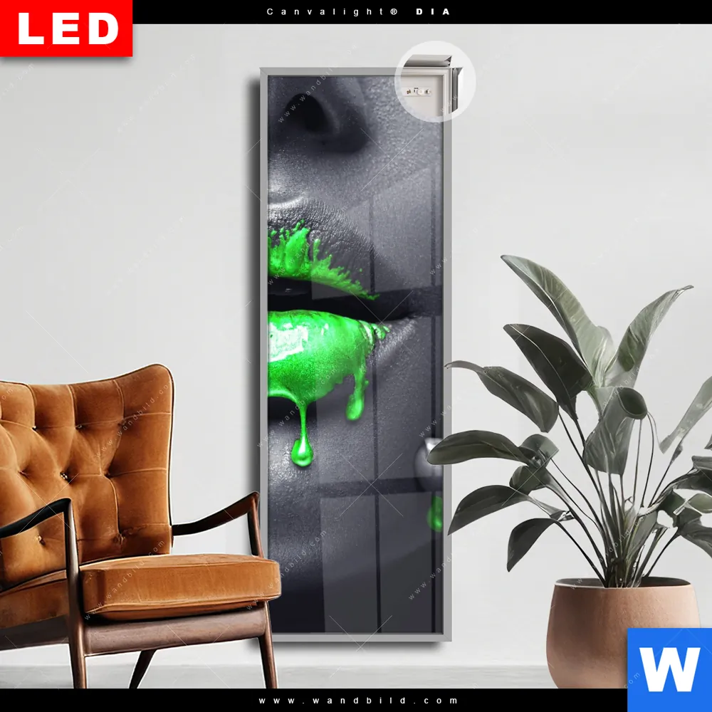 Canvalight® DIA Leuchtbild | Lippen Silber & Grün | Schmal