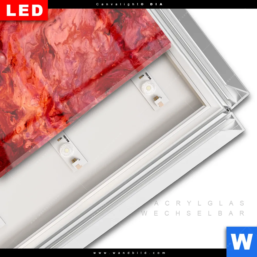 Canvalight® DIA Leuchtbild | Liquid Marmor rot | Hochformat