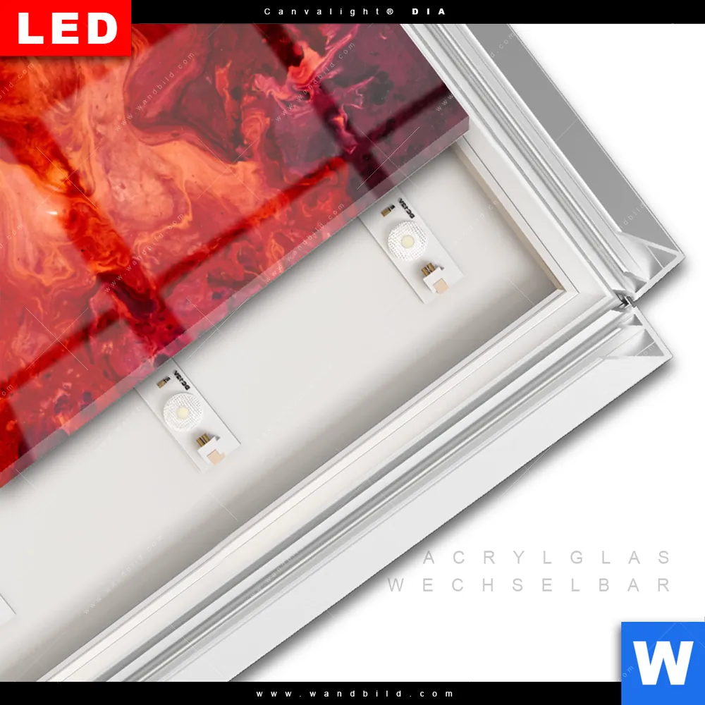 LED-Glasbild mit austauschbarem Acrylglas-Druck (Wechselbild)
