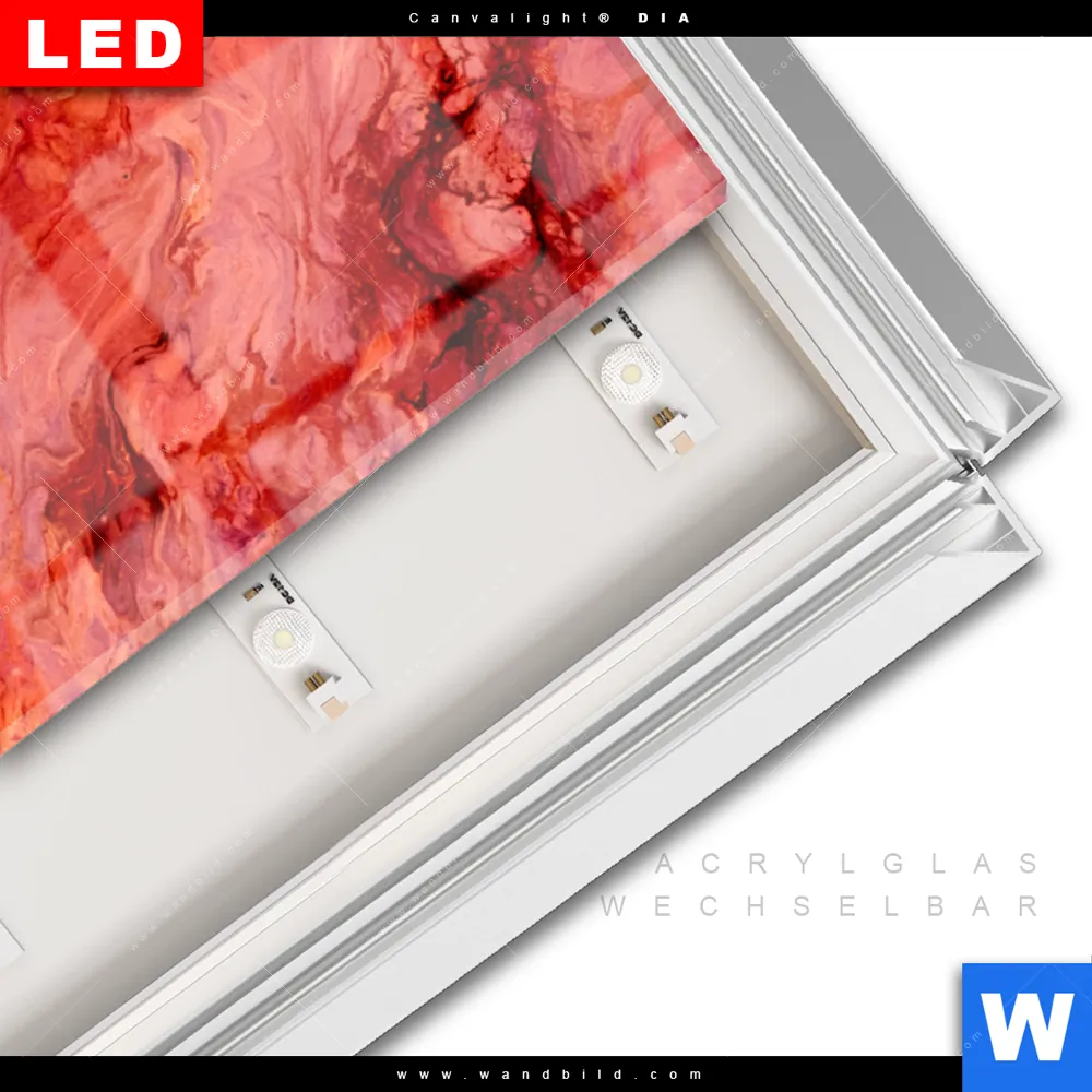 Canvalight® DIA Leuchtbild | Liquid Marmor rot | Schmal