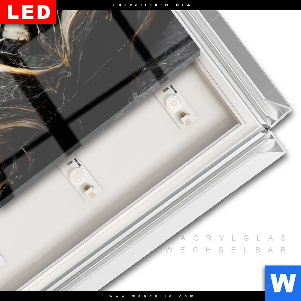 LED-Glasbild mit austauschbarem Acrylglas-Druck (Wechselbild)