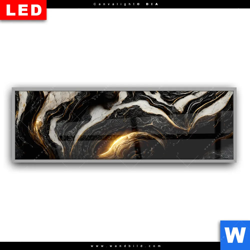 Canvalight® DIA Leuchtbild | Liquid Marmor Schwarz Gold | Panorama