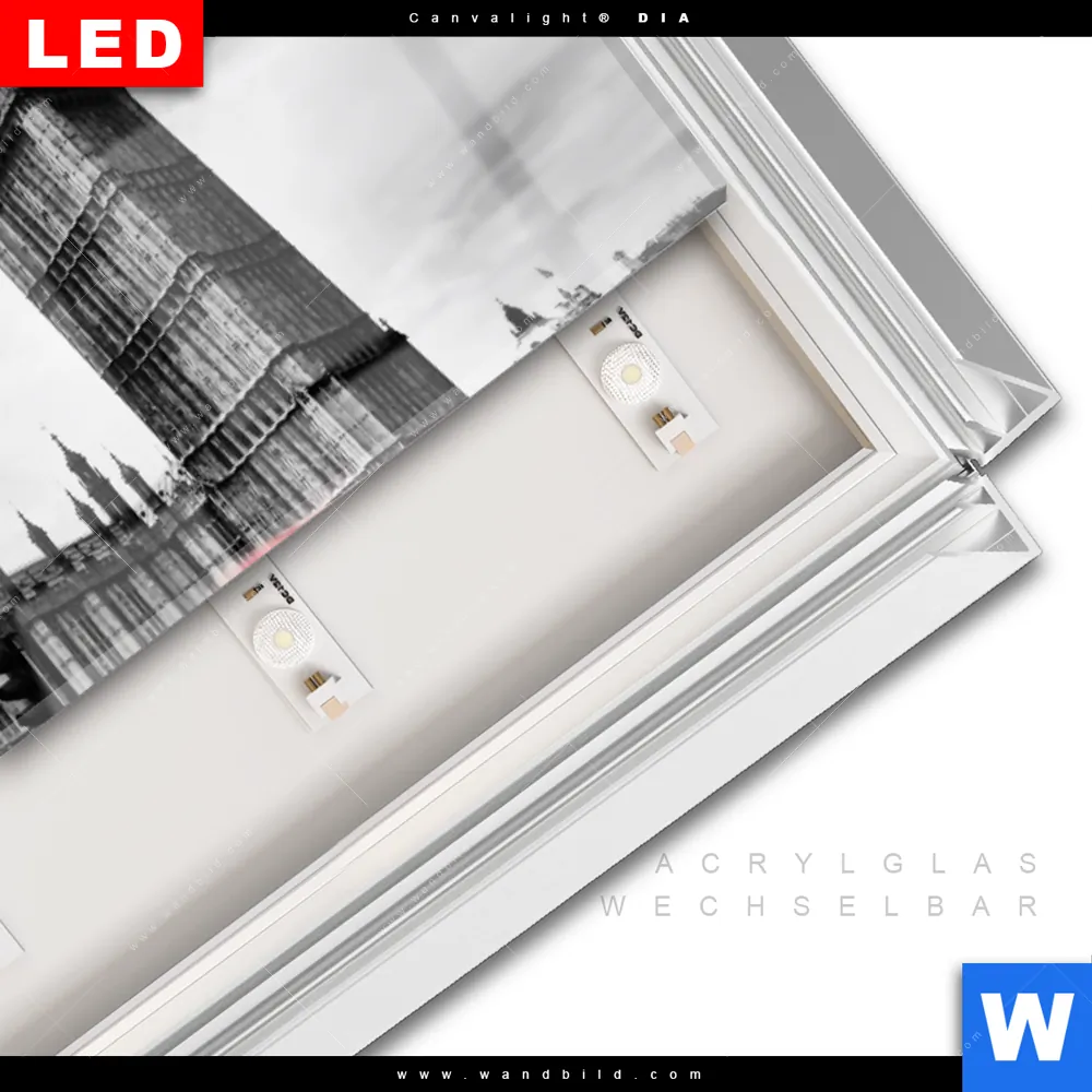 LED-Glasbild mit austauschbarem Acrylglas-Druck (Wechselbild)