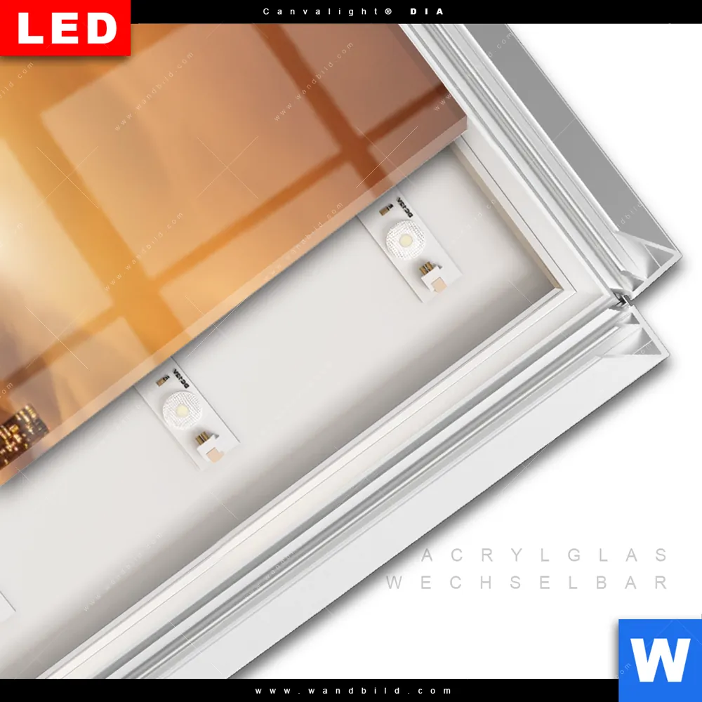 LED-Glasbild mit austauschbarem Acrylglas-Druck (Wechselbild)