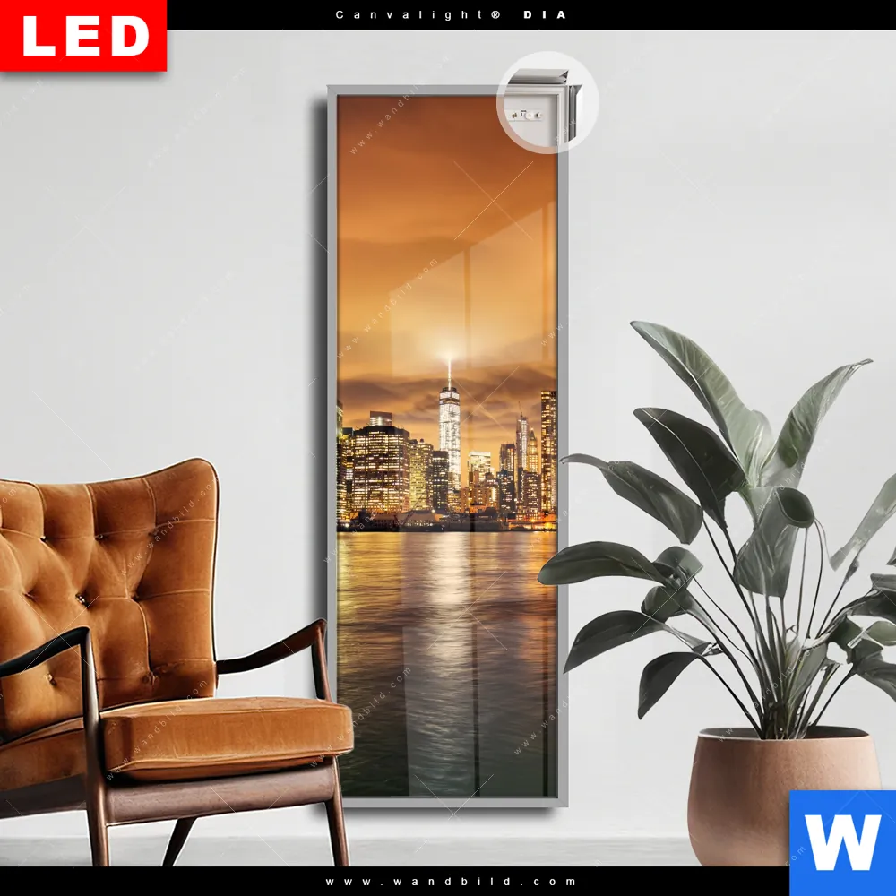 Canvalight® DIA Leuchtbild | Manhatten bei Sonnenuntergang | Schmal