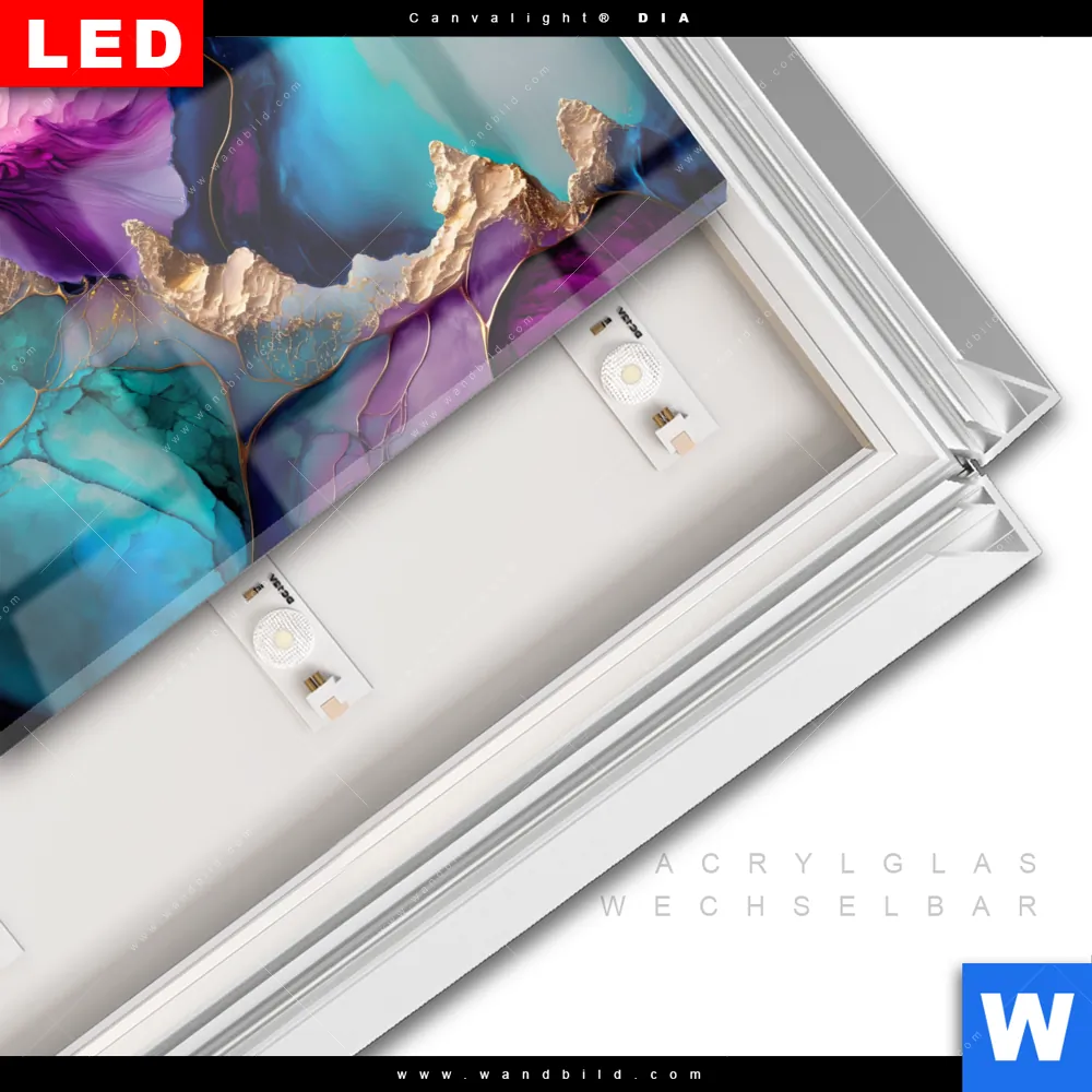 LED-Glasbild mit austauschbarem Acrylglas-Druck (Wechselbild)