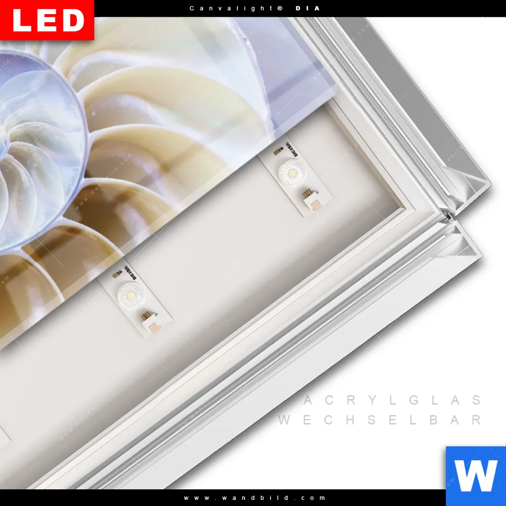 LED-Glasbild mit austauschbarem Acrylglas-Druck (Wechselbild)