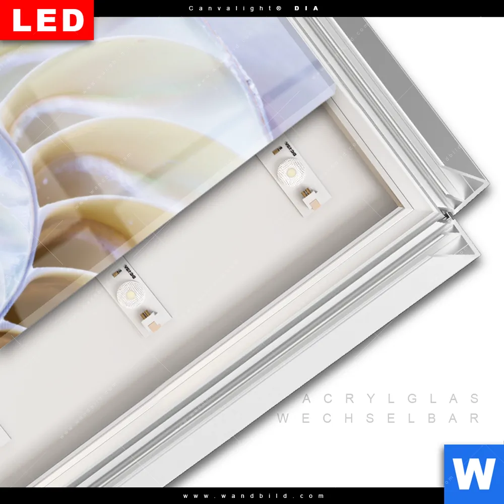 LED-Glasbild mit austauschbarem Acrylglas-Druck (Wechselbild)
