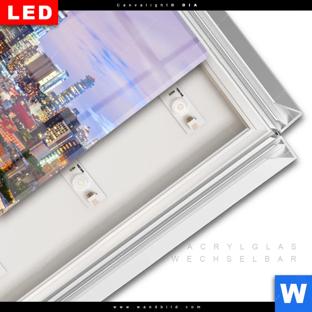 LED-Glasbild mit austauschbarem Acrylglas-Druck (Wechselbild)