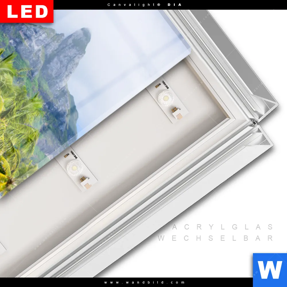 LED-Glasbild mit austauschbarem Acrylglas-Druck (Wechselbild)