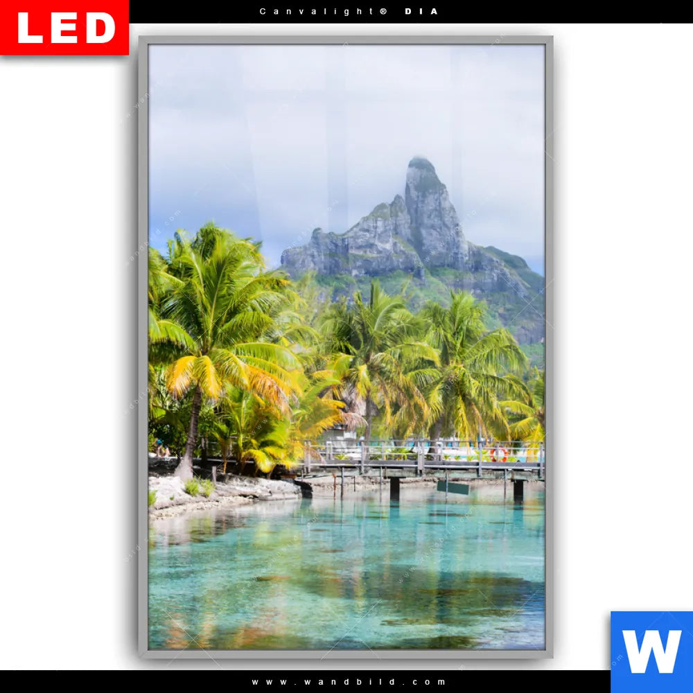 Canvalight® DIA Leuchtbild | Palmen & Berg auf Insel | Hochformat