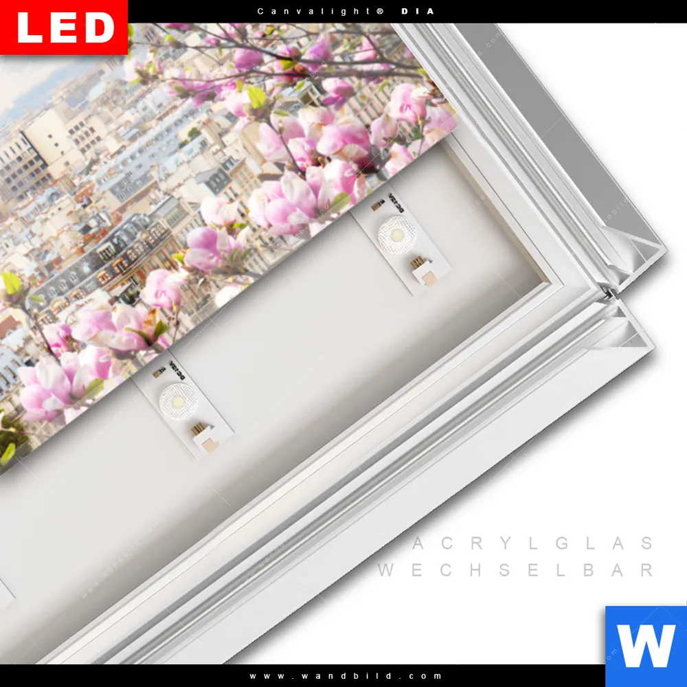LED-Glasbild mit austauschbarem Acrylglas-Druck (Wechselbild)