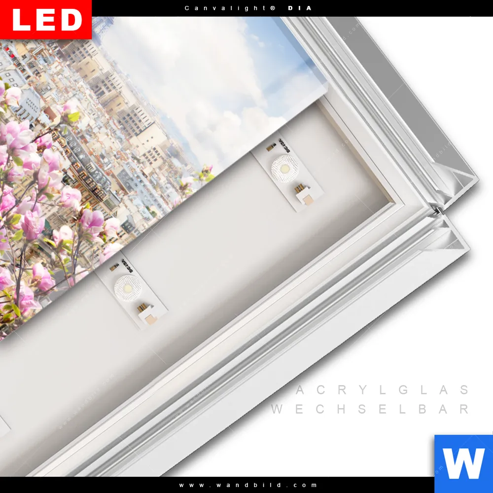 LED-Glasbild mit austauschbarem Acrylglas-Druck (Wechselbild)