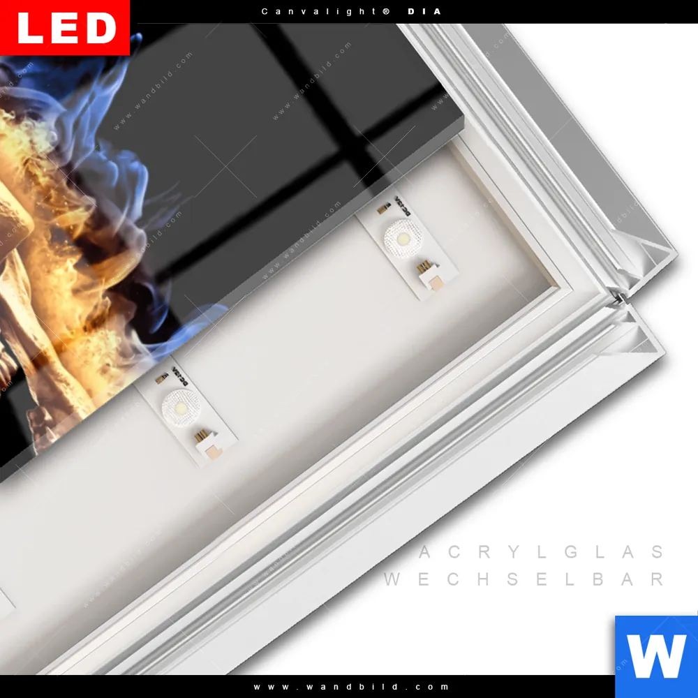 LED-Glasbild mit austauschbarem Acrylglas-Druck (Wechselbild)