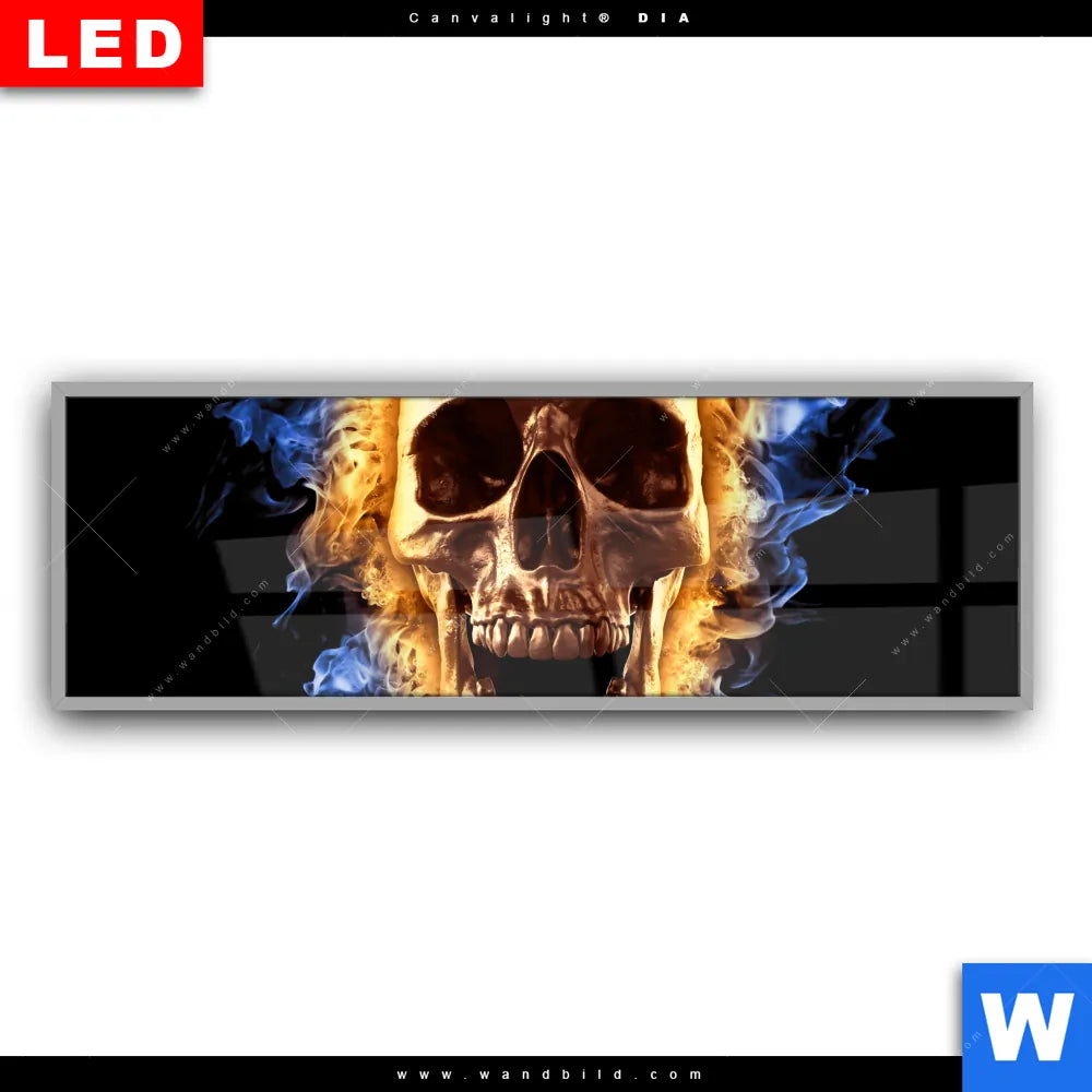 Canvalight® DIA Leuchtbild | Schädel in Flammen | Panorama