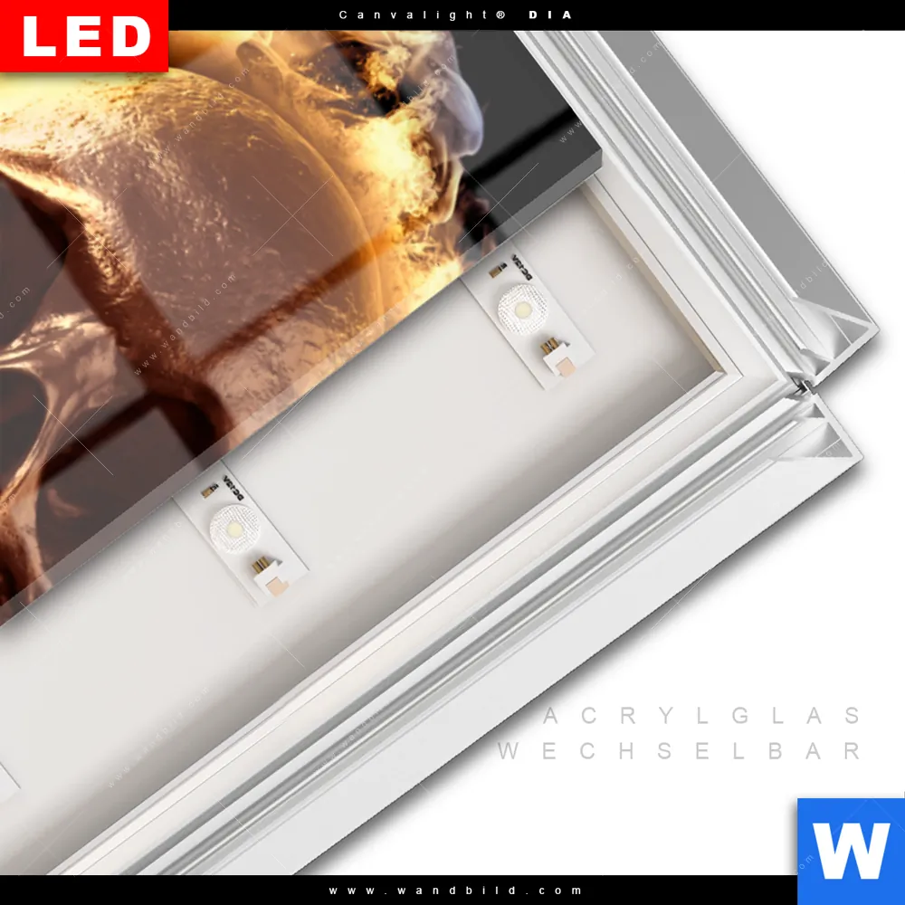 LED-Glasbild mit austauschbarem Acrylglas-Druck (Wechselbild)