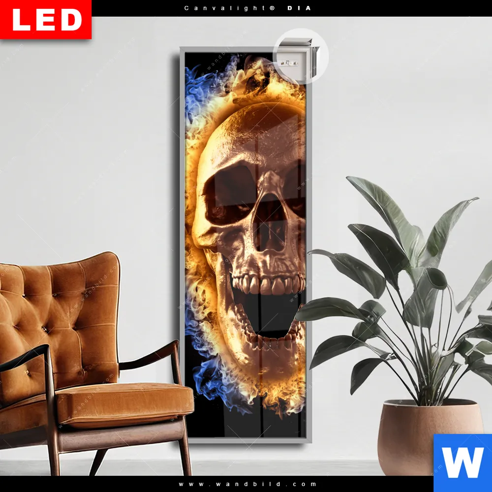 Canvalight® DIA Leuchtbild | Schädel in Flammen | Schmal