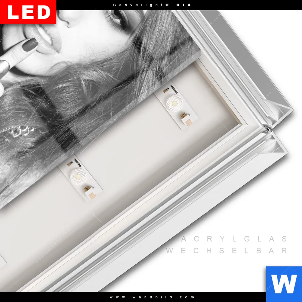 LED-Glasbild mit austauschbarem Acrylglas-Druck (Wechselbild)