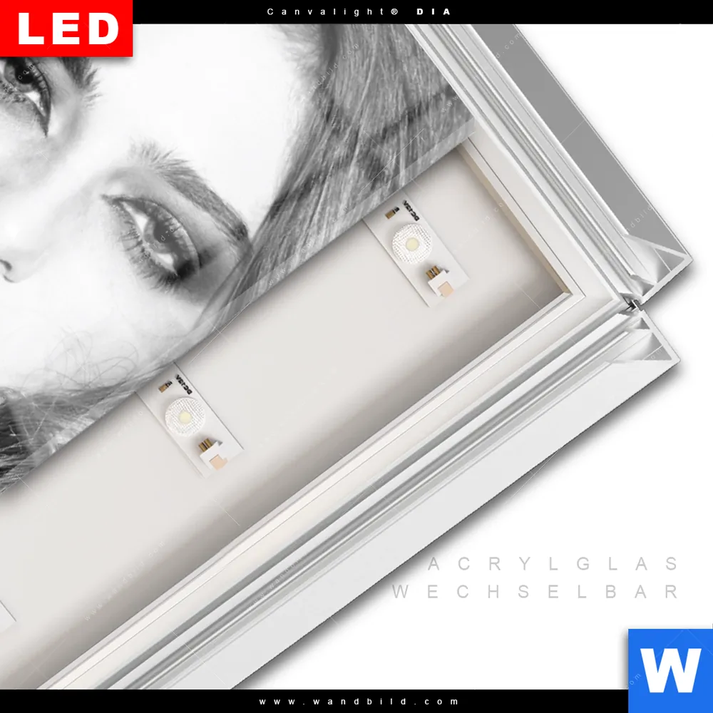 LED-Glasbild mit austauschbarem Acrylglas-Druck (Wechselbild)