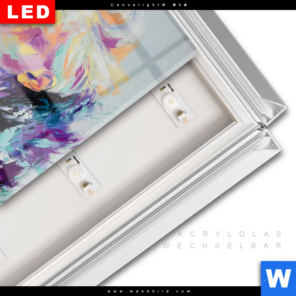 LED-Glasbild mit austauschbarem Acrylglas-Druck (Wechselbild)