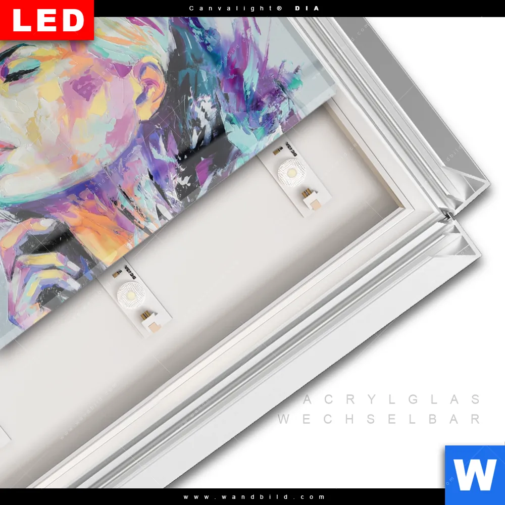 LED-Glasbild mit austauschbarem Acrylglas-Druck (Wechselbild)