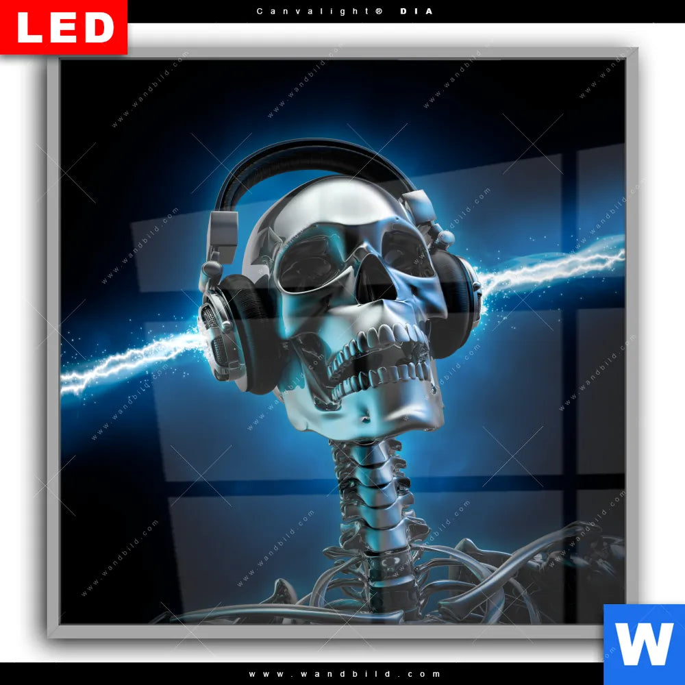 Canvalight® DIA Leuchtbild | Skelett & Kopfhörer | Quadrat