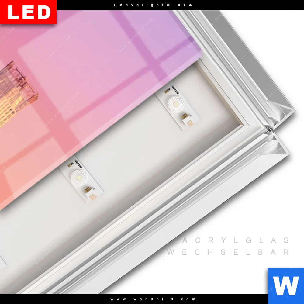 LED-Glasbild mit austauschbarem Acrylglas-Druck (Wechselbild)