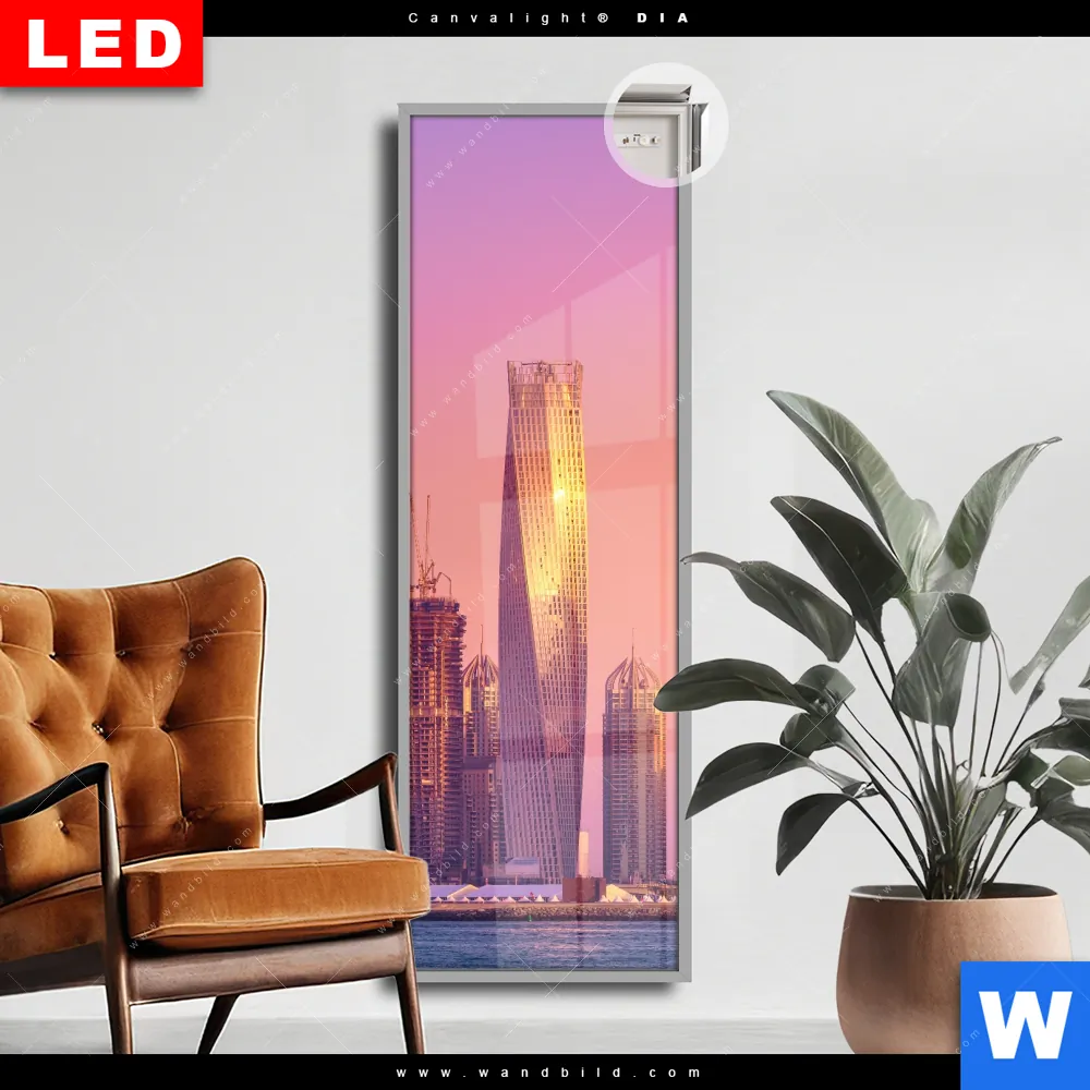 Canvalight® DIA Leuchtbild | Sonnenaufgang in Dubai | Schmal