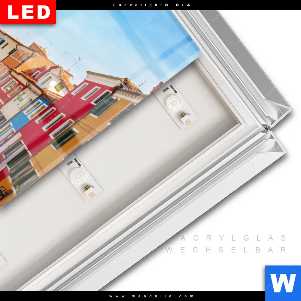 LED-Glasbild mit austauschbarem Acrylglas-Druck (Wechselbild)