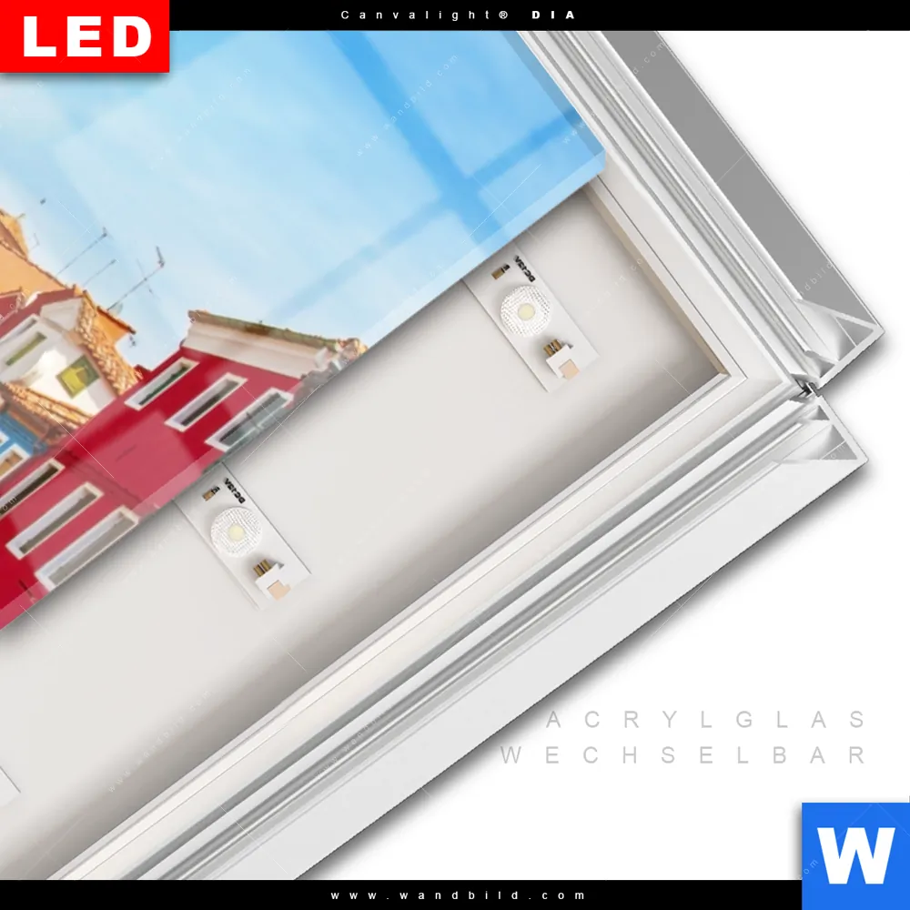 LED-Glasbild mit austauschbarem Acrylglas-Druck (Wechselbild)