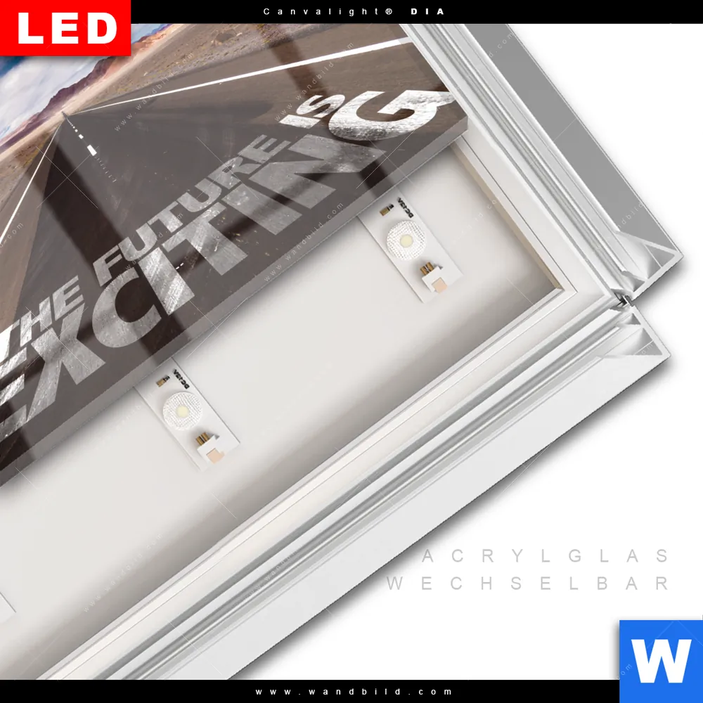 LED | Wechselrahmen-System | Acrylglas-Wechselbilder | DIA-Klapprahmen-Funktion