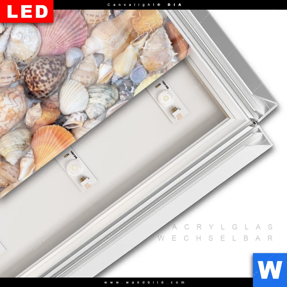 Canvalight® DIA Leuchtbild | Viele Muscheln | Schmal