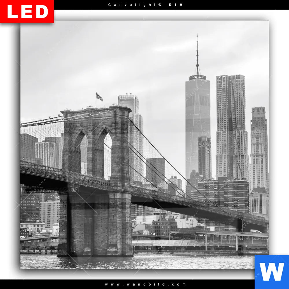 Wechselmotiv Acrylglas Canvalight® DIA | Brooklyn Bridge Schwarzweiß | Quadrat