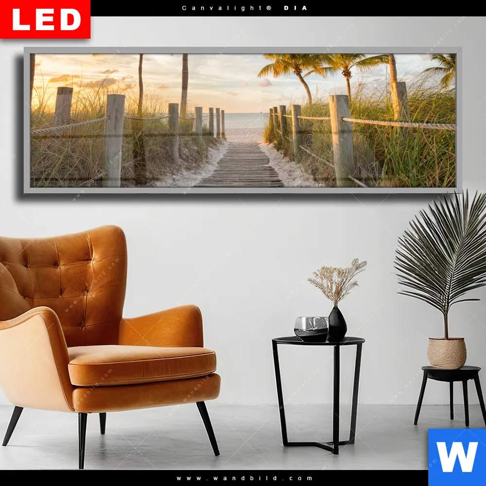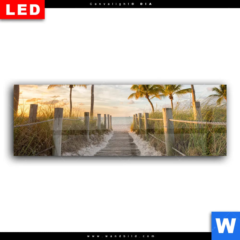 Wechselmotiv Acrylglas Canvalight® DIA | Palmen am Strandweg | Panorama
