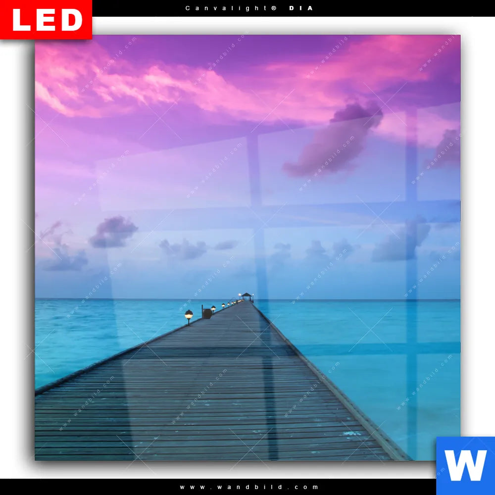 Wechselmotiv Acrylglas Canvalight® DIA | Sonnenuntergang auf den Malediven | Quadrat