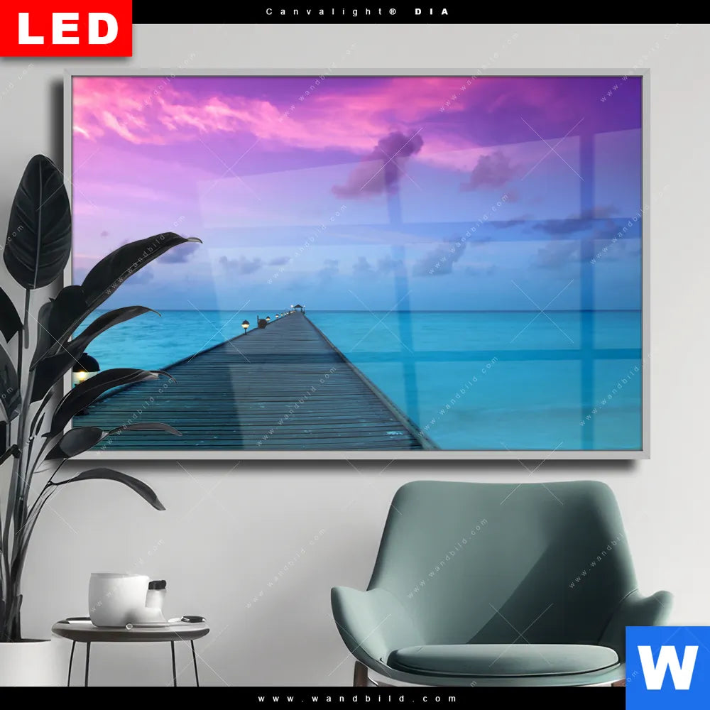 Wechselmotiv Acrylglas Canvalight® DIA | Sonnenuntergang auf den Malediven | Querformat