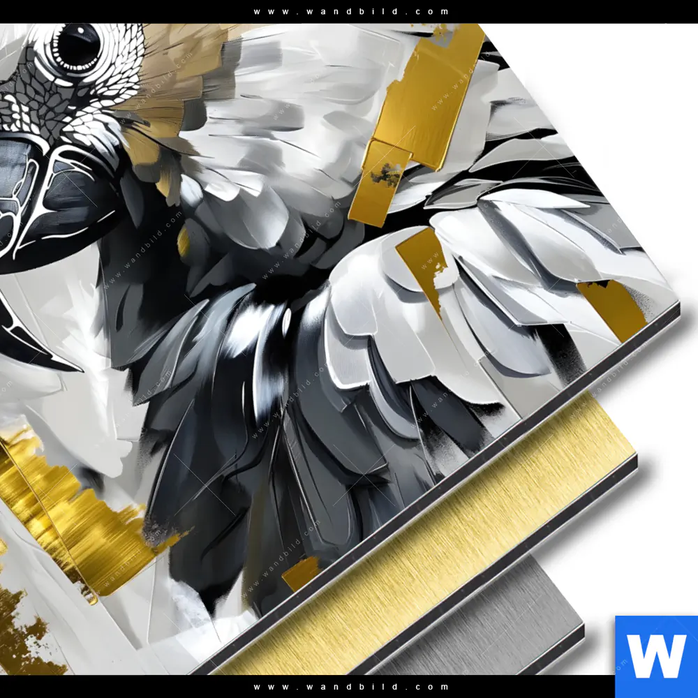 Aluminiumbild gebürstet | Abstrakter Papagei mit Gold | Quadrat