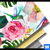 Aluminiumbild gebürstet | Blumen & Papageien Aquarell | Hochformat