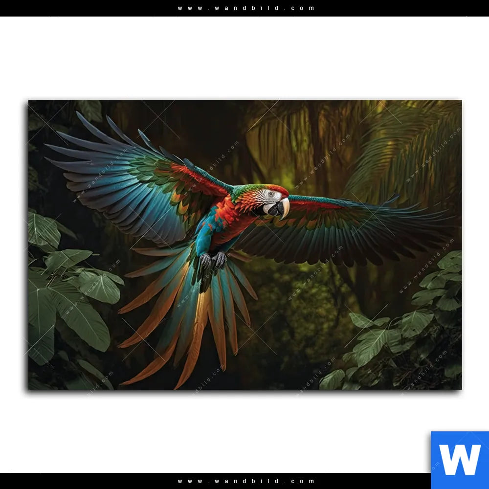 Aluminiumbild gebürstet | Papagei im Flug | Querformat