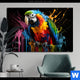 Aluminiumbild gebürstet | Papagei mit bunten Farbspritzern | Panorama