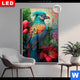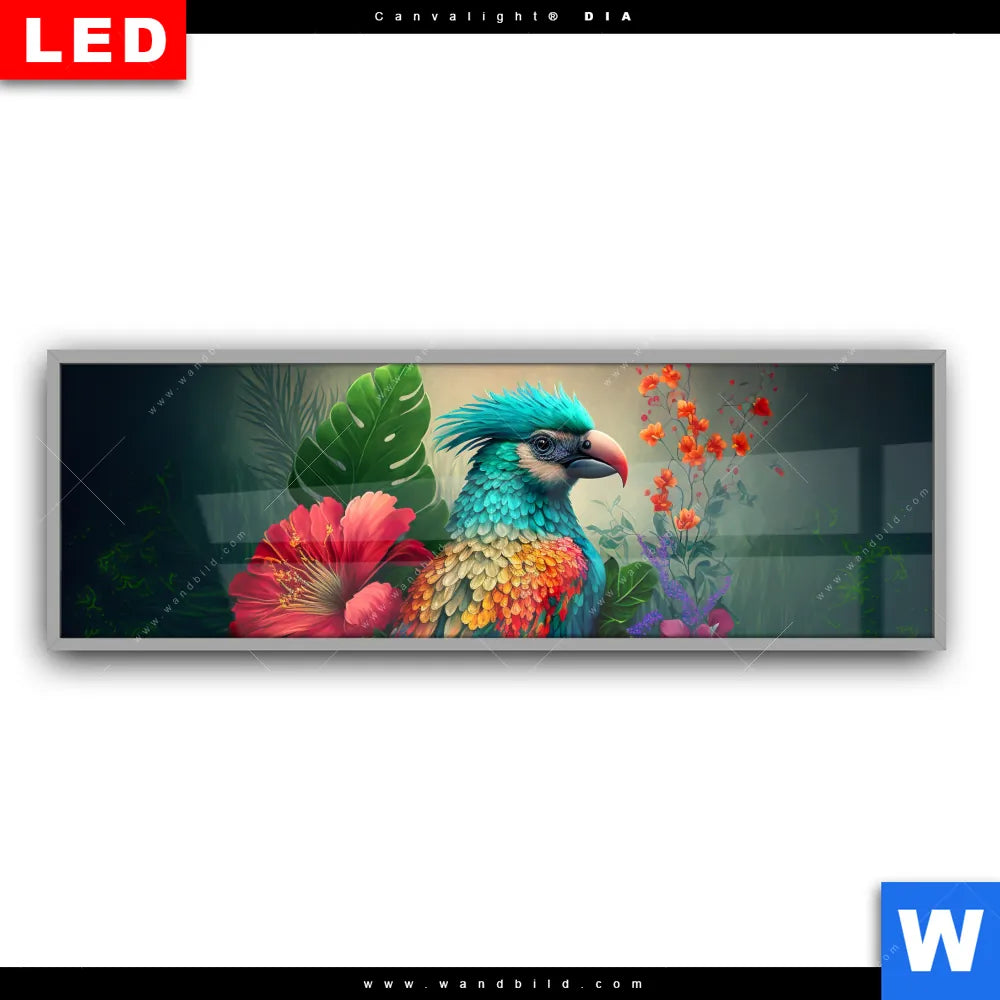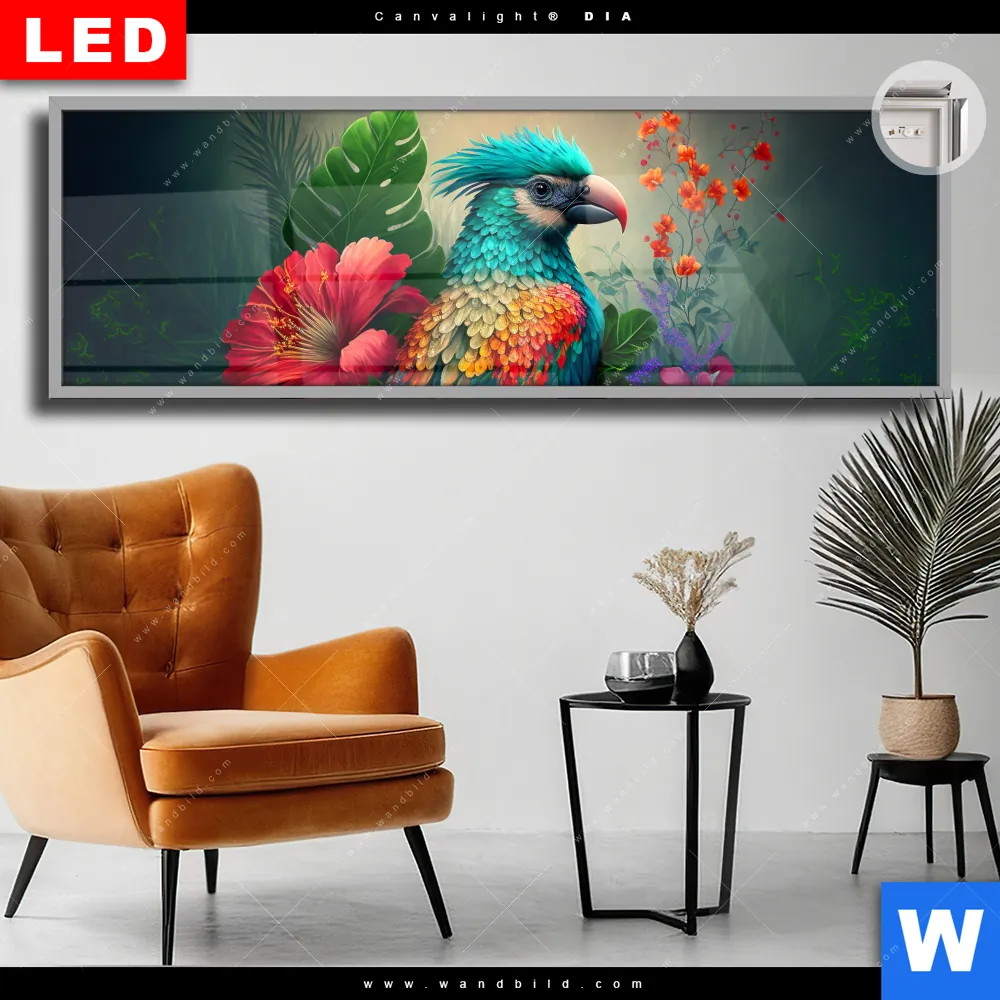 Canvalight® DIA Leuchtbild | Papagei und tropischer Hibiskus | Panorama