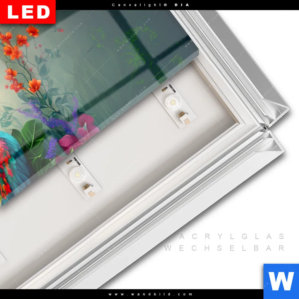 LED-Glasbild mit austauschbarem Acrylglas-Druck (Wechselbild)