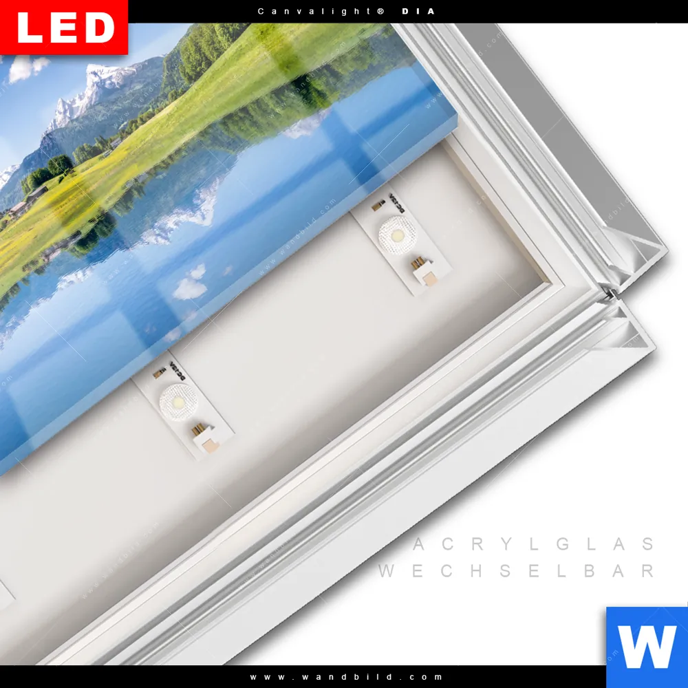 LED-Glasbild mit austauschbarem Acrylglas-Druck (Wechselbild)
