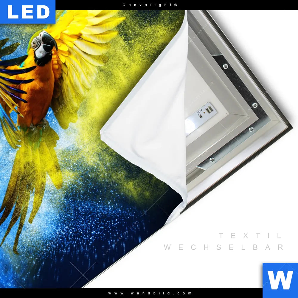 Canvalight® TEX Leuchtbild | Papagei - Farbexplosion | Quadrat
