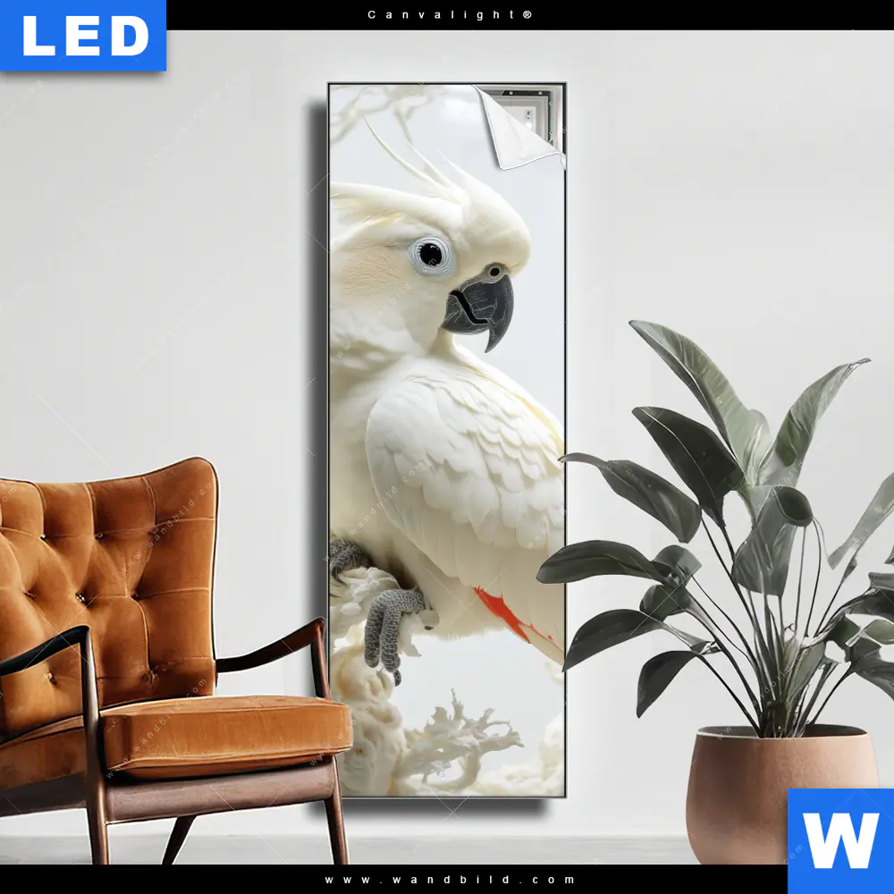 Canvalight® Leuchtbild | Papagei - Zarte Gefangenschaft | Schmal
