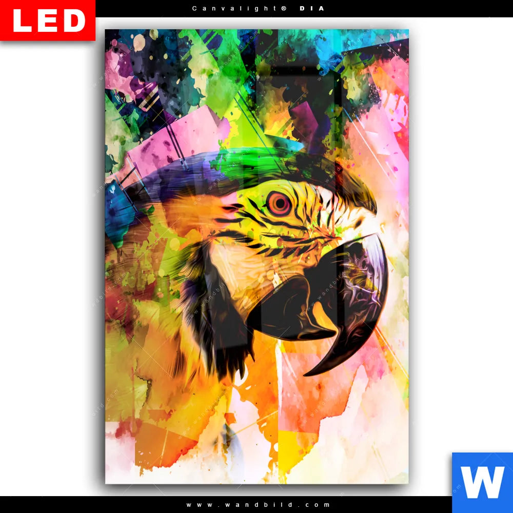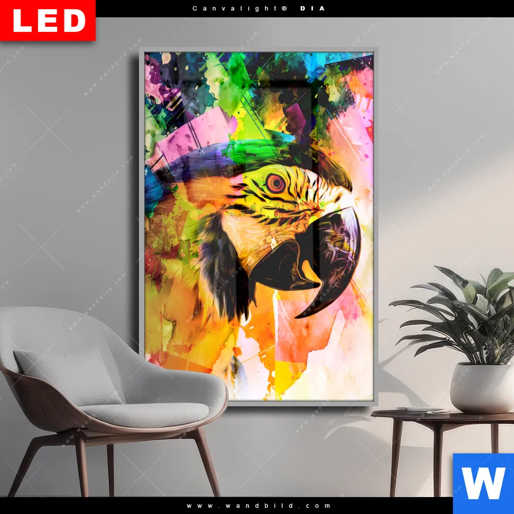 Wechselmotiv Acrylglas Canvalight® DIA | Abstrakter Papagei | Hochformat
